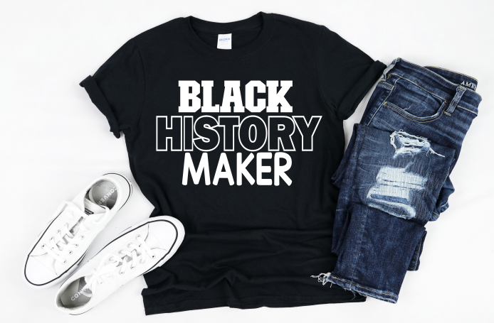Black History Maker! Available in a black short sleeve unisex shirt with white print!