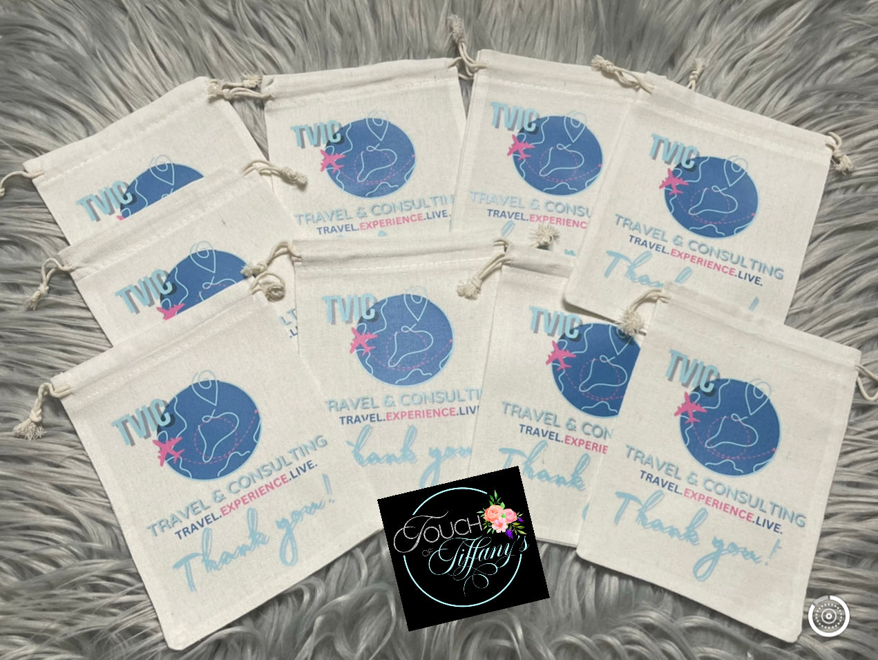 Bags can be customized with a logo or just words. Tell us your brand or event colors and upload and a picture or logo. Upload here or email touchoftiffanys@gmail.com Bags are 5x7 inches which make perfect party Favors (Only sold in denominations of 10)