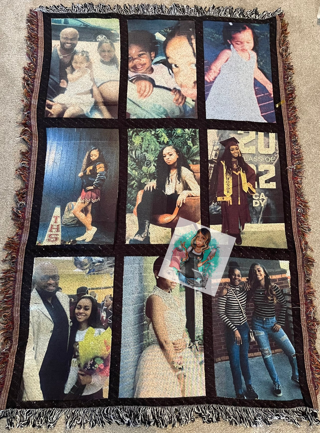 Blankets make a nice gift for any occassion. Each picture is about 16x 9 for the 9-panel blanket. Please upload pictures or email to touchoftiffanys@gmail.com.