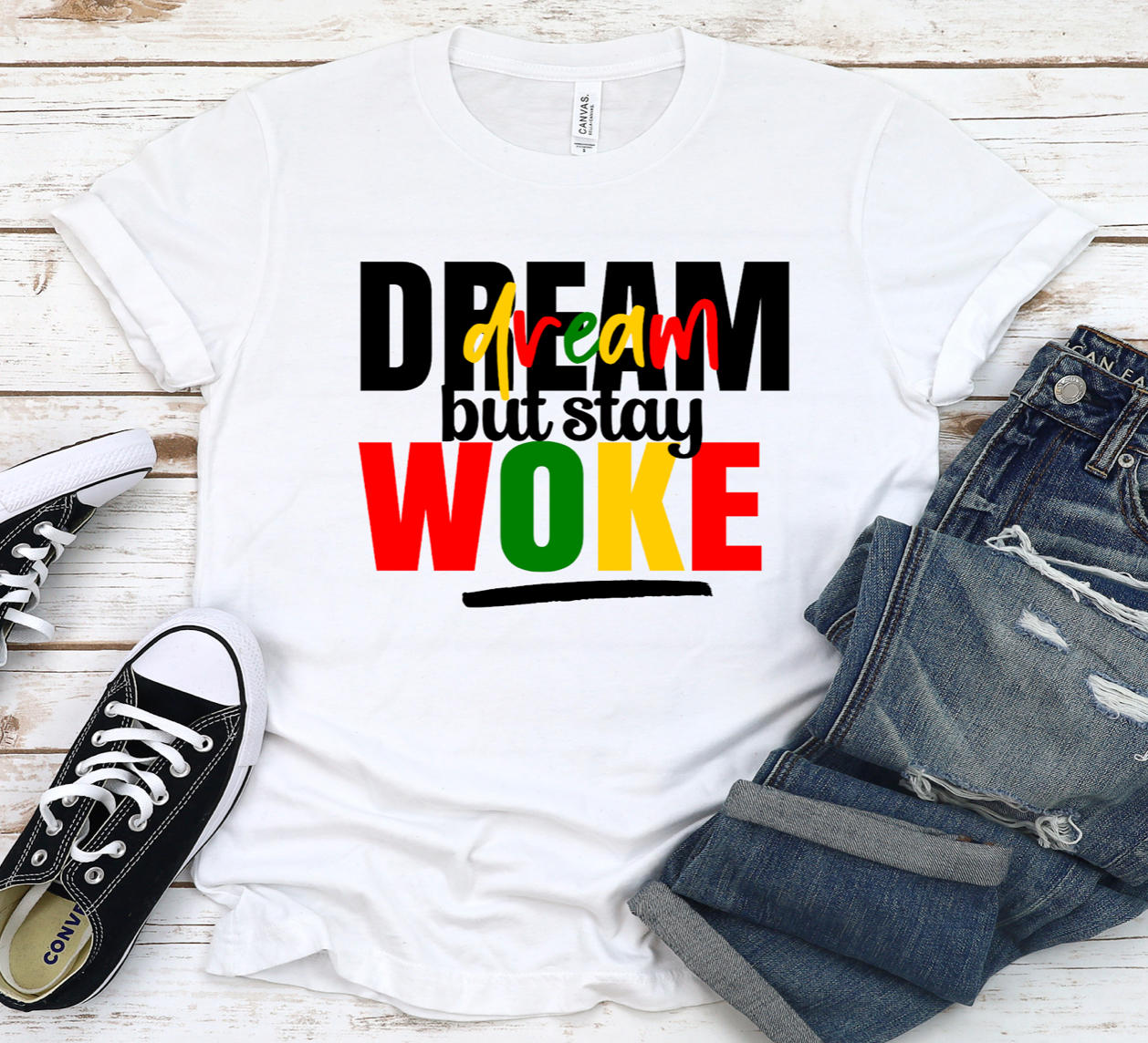 Need a Statement Shirt? Our Dream but Stay WOKE Shirt is perfect! Available in white and black only!