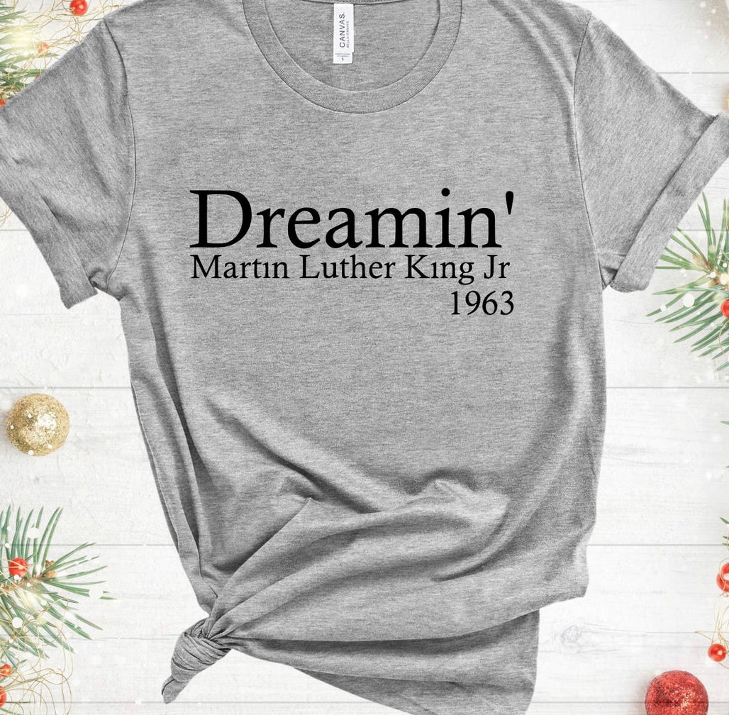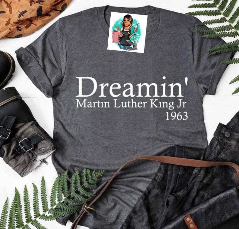 Represent Dr. King with this statement t-shirt. Heather Grey or Sports Grey only with black or white print. Shipping or local pick-up available.