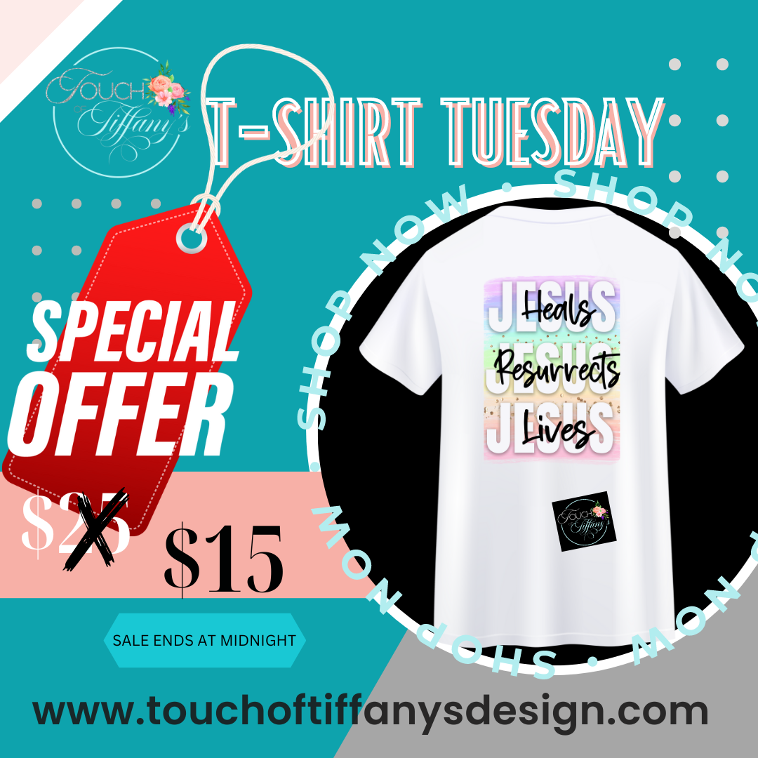Jesus Heals, Jesus Resurrects, and Jesus Lives! Purchase this statement t-shirt today. Available in black and white unisex fit.