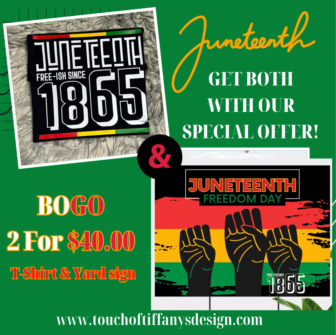 Juneteenth Special! Get a t-shirt and Juneteenth Yard sign.