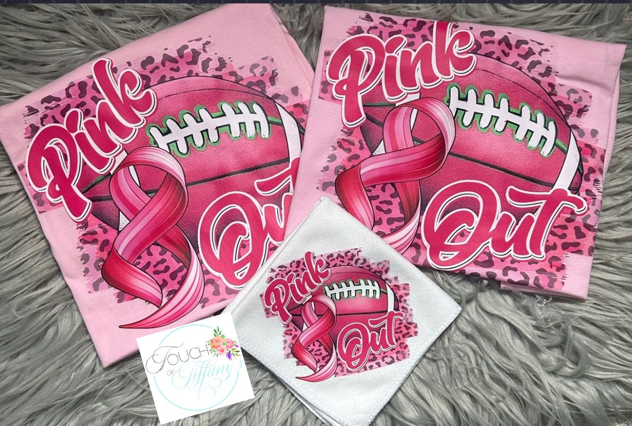 Pink out Football Edition. Support your favorite football team all while support Breast Cancer Awareness! Shirt is available in a light pink unisex style shirt. Receive a free rally towel while supplies last.