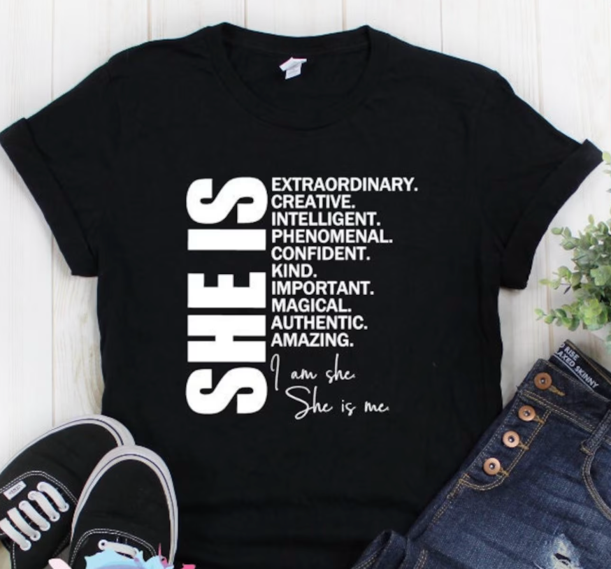 Celebrate Women's History Month with this perfect t-shirt for any collection! She is..... Available in a black unisex t-shirt! Dress this shirt up or dress it down.