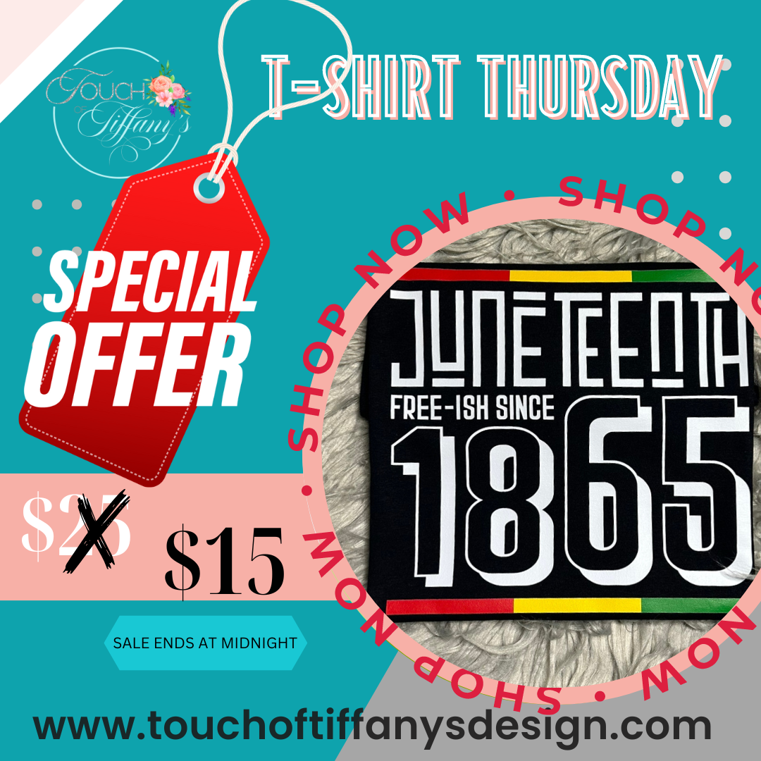 Shop our Juneteenth T-Shirt Thursday Sale! Available in a black shirt only.
